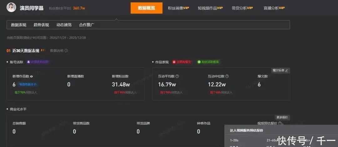 网友2024年发布闫学晶说“酸黄瓜”的视频据媒体2025年12月30日报道,近日,闫学晶在直播间透露32岁的儿子年收入仅几十万元,却需负担家庭年开支80-100万元,否则家庭无法运转,引发不少网友质疑与争议。闫学晶透露,儿媳妇为音乐剧演员,收入较低,和儿子两人年总收入不足40万元。儿子如果在电视剧行业坚守会很难,压力非常大,另外一个出路就是跑横店闯一闯。第三方平台数据显示,闫学晶的某社交平台账号名为“演员闫学晶”,近期新增了31.48万粉丝,总粉丝数为360.7万,其1到20秒视频广告预估报价7.3万元,21到60秒视频广告预估报价9.4万元,60秒以上视频广告预估报价为12万元。