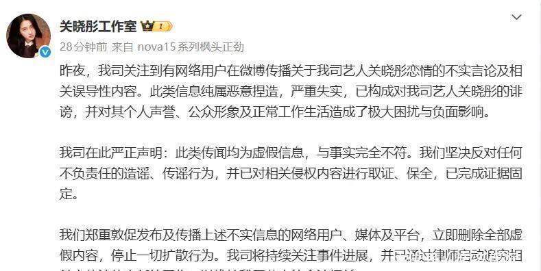 整件事最吊诡的地方是,一个没有证据的群聊截图,怎么就能引爆全网?王安宇这边倒是干脆,直接走法律程序,证据都固定好了。关晓彤工作室也一样,话不多说,先保全证据,再告到底。你看,现在这些团队都不惯着了,以前可能冷处理,现在直接亮剑。