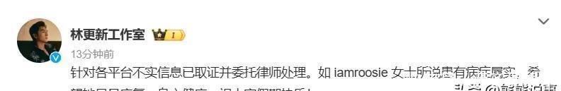 更离谱的是爆料人司晓迪,用的账号是iamroosie,前脚刚甩出一堆猛料,后脚就被各路工作室围攻。林更新那边反应很快,3号早上直接发话,说已经取证,律师在处理,还顺带提了句希望对方“早日康复、身心健康”,这话听着客气,其实挺耐人寻味的。鹿晗工作室也不含糊,连发两条,明确说谣言已经进入法律流程,让大家别转发了,再传就追责。
