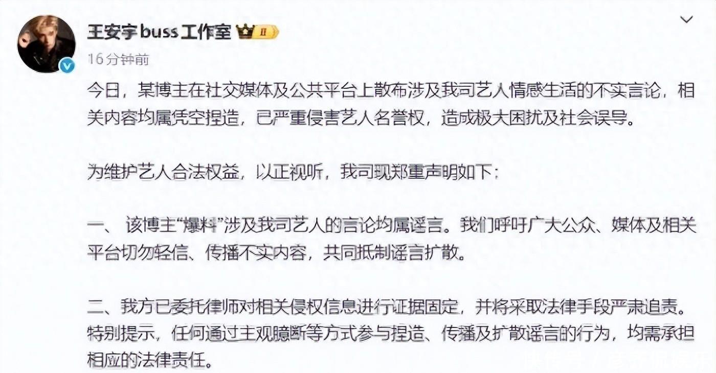 这年头,明星的私生活好像成了全民猜谜游戏。1月3日一大早,王安宇和关晓彤的工作室几乎前后脚发声明,语气还挺硬,说有人造谣他俩谈恋爱,纯属胡扯。其实不光是他俩,鹿晗、林更新、檀健次好几个男星都“被恋爱”了,源头是一个叫司晓迪的博主,2号晚上在粉丝群里突然爆料,一口气点名好几位艺人,说他们和自己有过感情纠葛,最炸的是那句——“王安宇和关晓彤正在谈”。这话一出,直接炸了锅。
